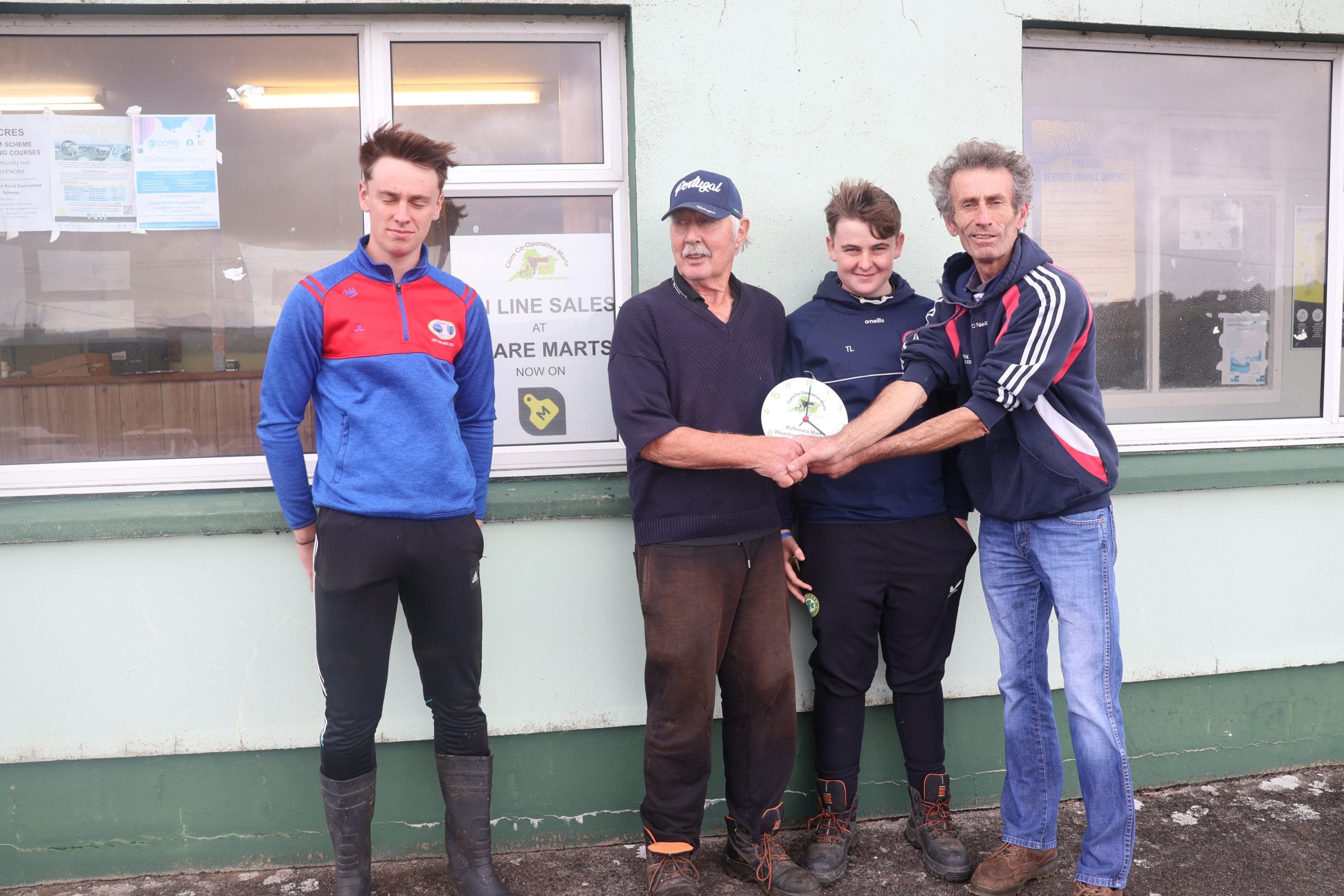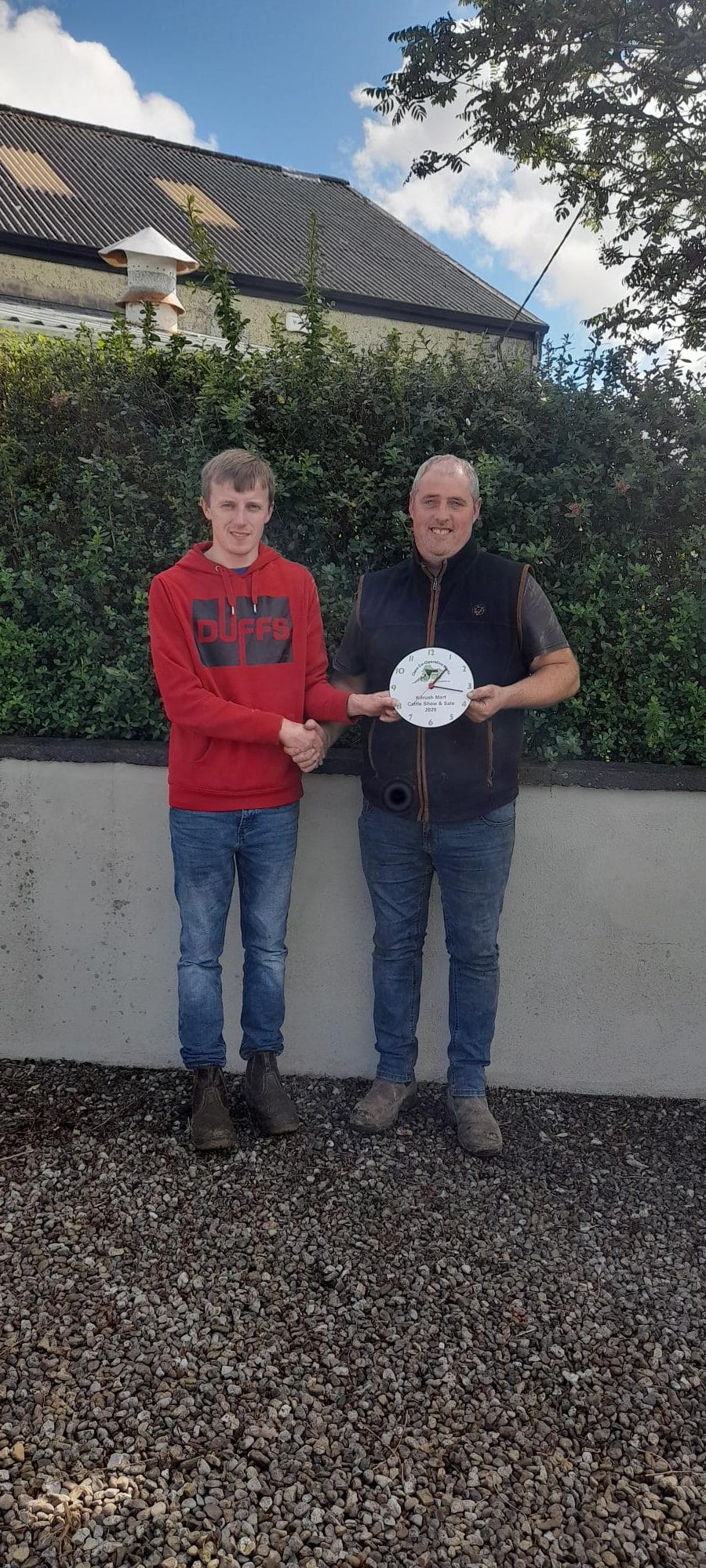 Scariff Mart Weanling Show and Sale Michael McNamara Scariff receiving his prize for the Best LM Bull from Aoife Rodgers Clare Marts.