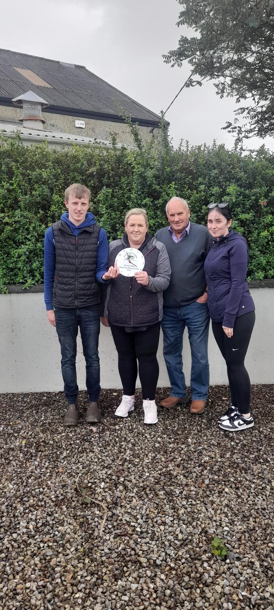 Kilrush Mart Cattle Show & Sale 2025 Assumpta & Gerry Moloney receiving her prize for 1 Store Hfr born after 1/1/2024 from Martin McNamara Clare Marts