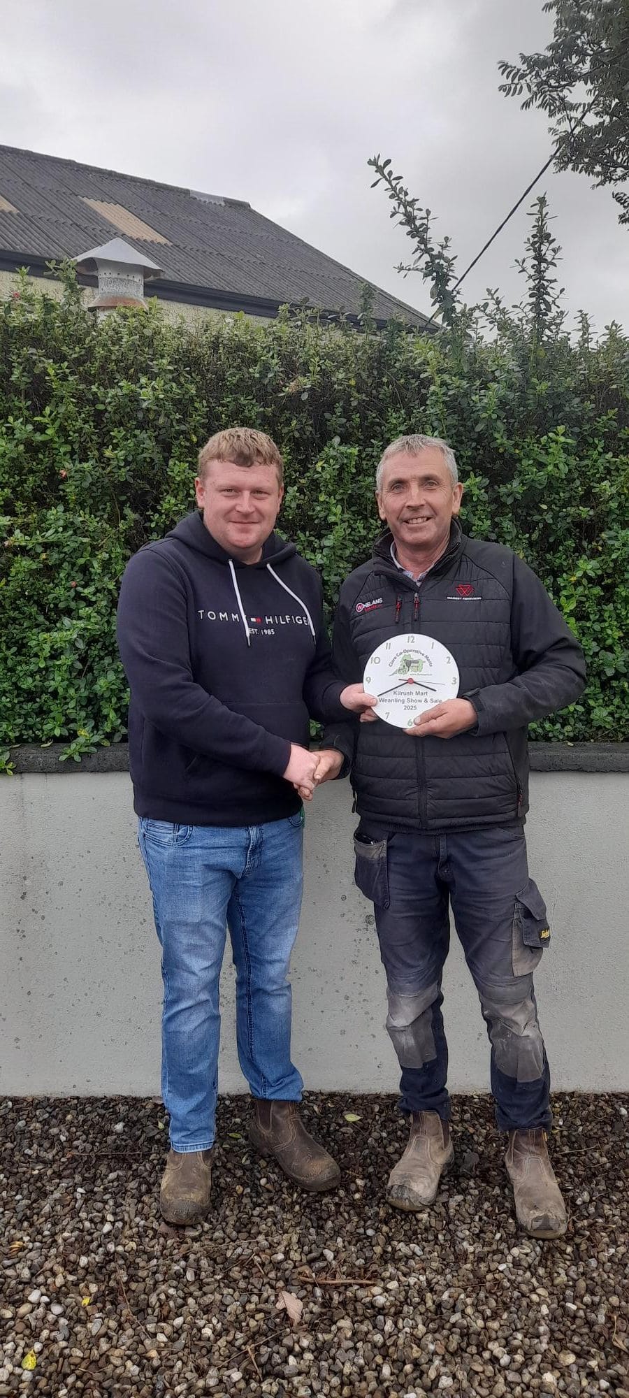 Scariff Mart Weanling Show and Sale Pascal O’Hallornan Bodyke receiving his prize for the Best CH Bull from Conor Nugent Clare Marts.