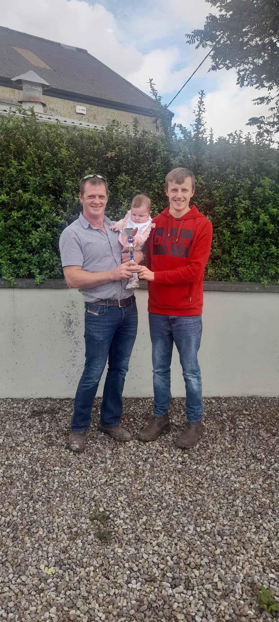 Ennis Mart Weanling Show & Sale Kieran Clancy AIB Ennis presenting to Brian Moroney on behalf of Muireann Hanon Adare for the best BB Hfr. Also in photo Aidan McCarthy AIB Ennis.