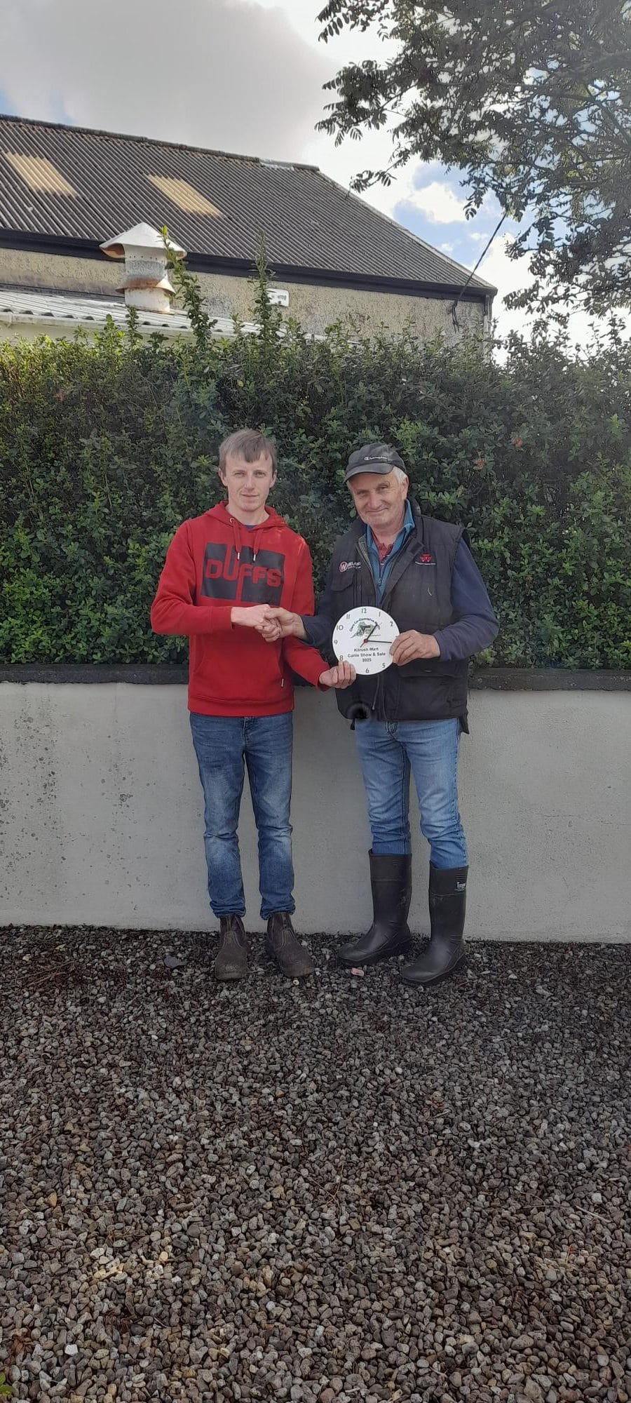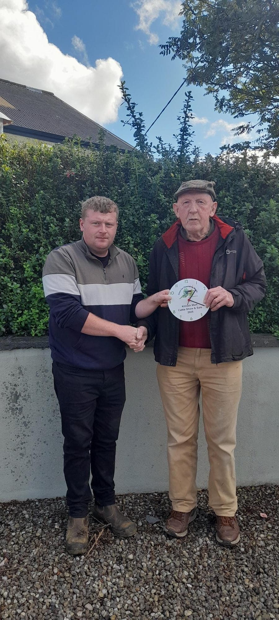 Kilrush Mart Cattle Show & Sale 2025 Noel Golden receiving his prize for 2 or more Beef Bks Continental breed from Conor Nugent Clare Marts.