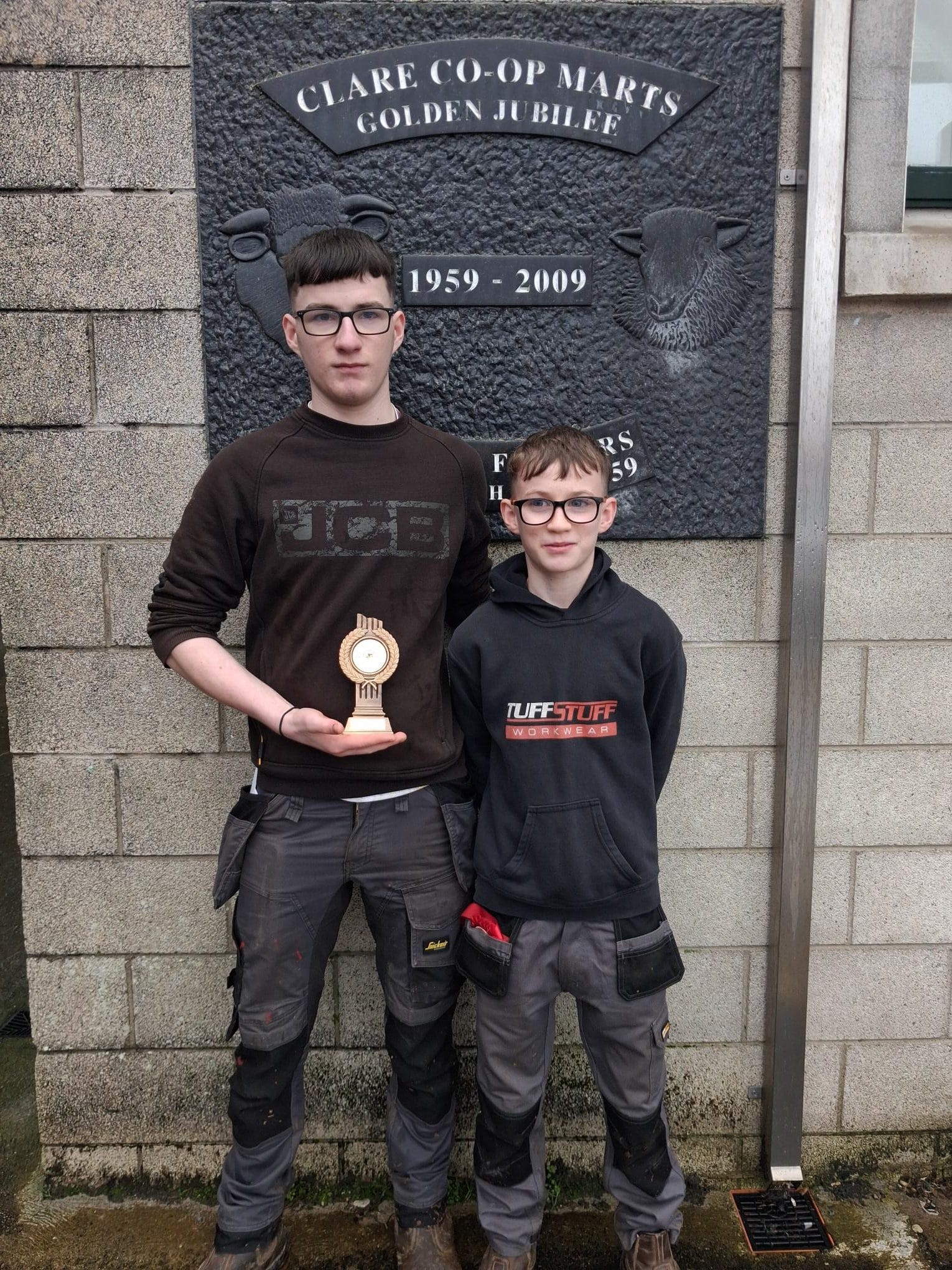 Scariff Mart Weanling Show and Sale Cian Minogue Tuamgraney receiving his prize for the Best LM Hfr from Aoife Rodgers Clare Marts.